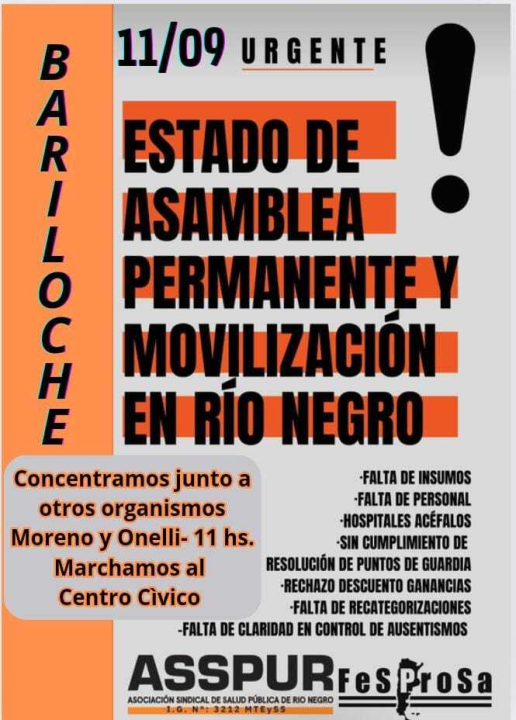 En la ciudad emblema de la cordillera rionegrina, gremios de peso en la región confluirán en una convocatoria: este miércoles a las 11, en Onelli y Moreno. ATE, Unter y Asspur sostienen la iniciativa.