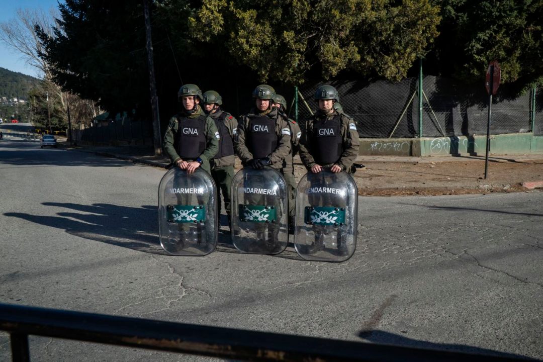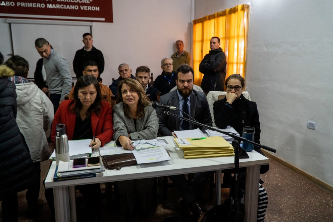 Con vallas instaladas en cada esquina de la manzana que ocupa el Escuadrón 34 de Gendarmería Nacional, restricciones de circulación a 200 metros a la redonda, y decenas de uniformados de la fuerza federal, el juzgado federal de Bariloche preparó el juicio oral, que poco tuvo de público.