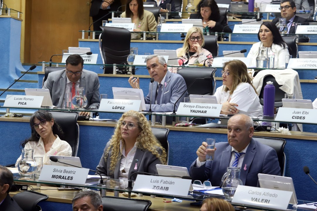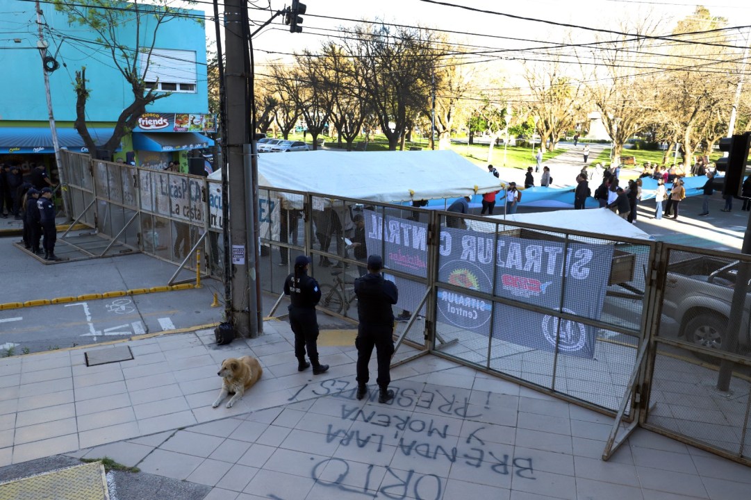 La sesión se realizó con un fuerte dispositivo de seguridad, con la sede legislativa vallada, y desplazó a un grupo de manifestantes de Sitrajur a la intersección de las calles San Martín y Belgrano.