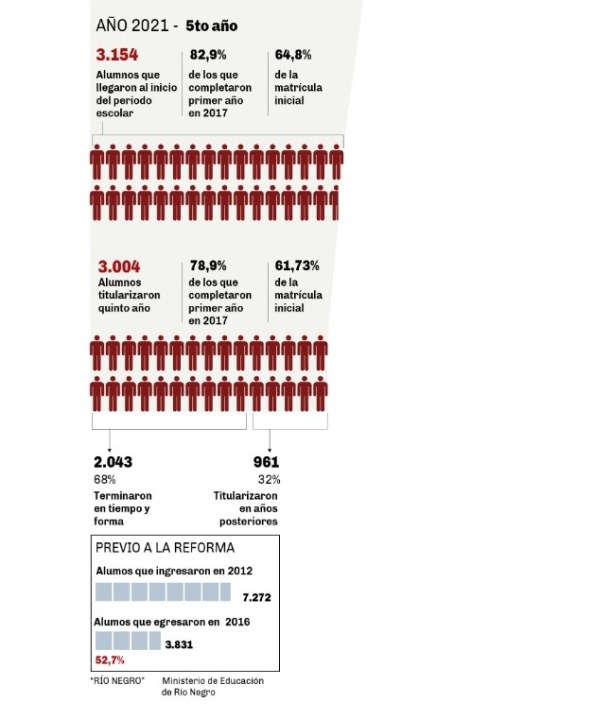 A seis años del inicio de su implementación, la Reforma secundaria de Río Negro abre su tiempo de evaluación. En principio, Educación valora lo logrado, aportando datos de una mayor retención de los estudiantes. Unter no contradice esa estadística, pero reclama más “tareas de acompañamiento” del estudiantado, con un incremento de docentes.