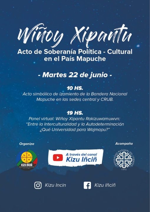En flyers difundidos el año pasado para un acto similar aparece el logo oficial de la universidad, destacándose que la casa de estudios “acompaña” un acto de «soberanía político-cultural en el País Mapuche» organizado por “Kizu Iñciñ – Organización Mapuche en la UNKo”, que se previó para el 22 de junio de 2021.