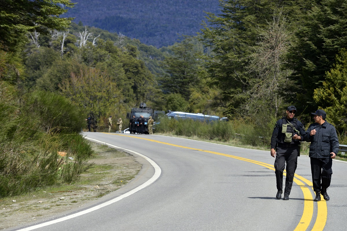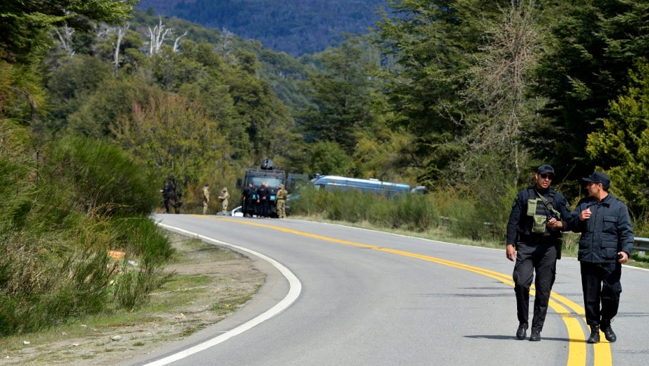 Hacia el sur, otros dos agentes de la Policía Federal custodiaban la ruta nacional frente a las ruinas del viejo hotel de Parques Nacionales. Explicaron que solo se podía avanzar en vehículo porque continuaba el operativo en el sector de la ocupación de la comunidad Lafken Winkul Mapu.