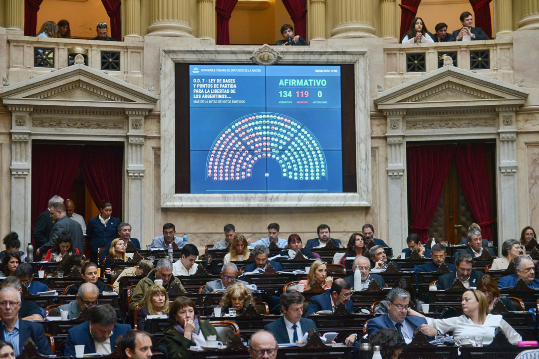Con 147 votos afirmativos, 107 negativos y 2 abstenciones, se aprobó la Ley de Bases.