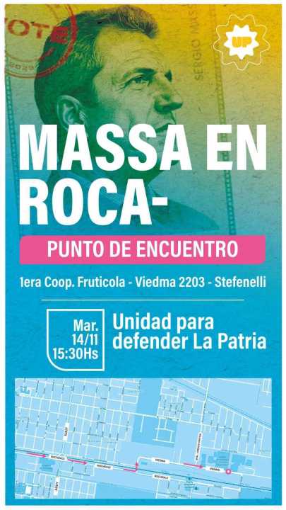 El candidato a presidente de Unión por la Patria, Sergio Massa estará presente en Cipolletti y Roca a menos de una semana para el balotaje en el que se definirá quién será el próximo presidente. Los detalles de la agenda que tendrá este martes el ministro, en la región.