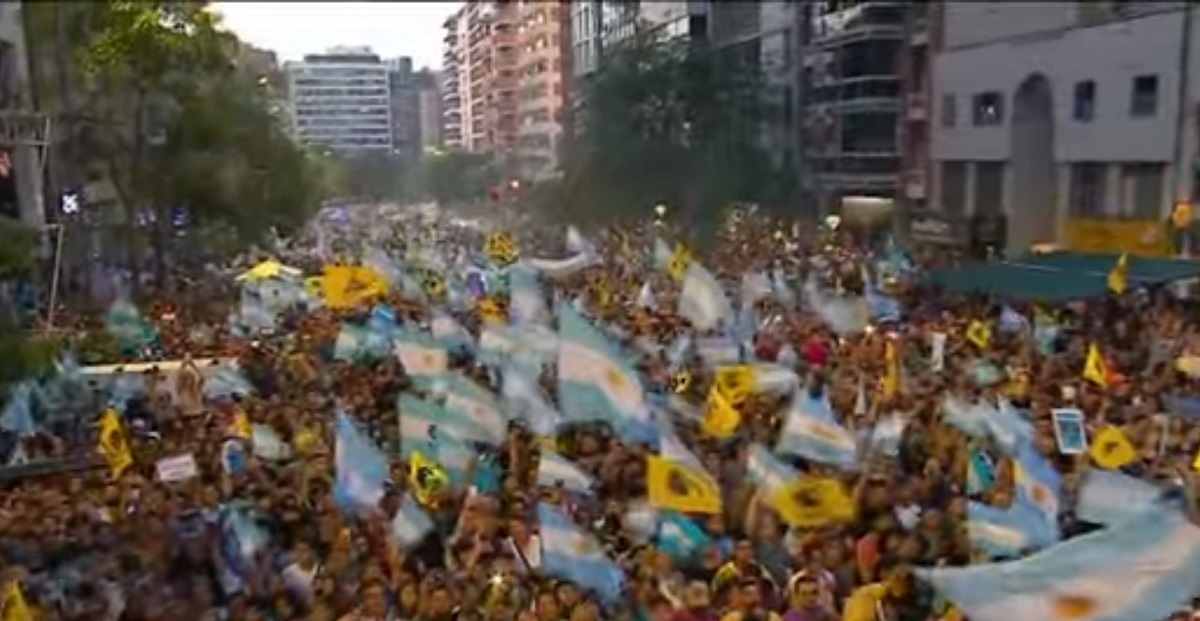 Milei habló ante una gran cantidad de militantes, que desde temprano se concentraron en microcentro de la capital cordobesa y hasta entonaron el recordado «Si se puede«, que Macri utilizó para su campaña en 2019.