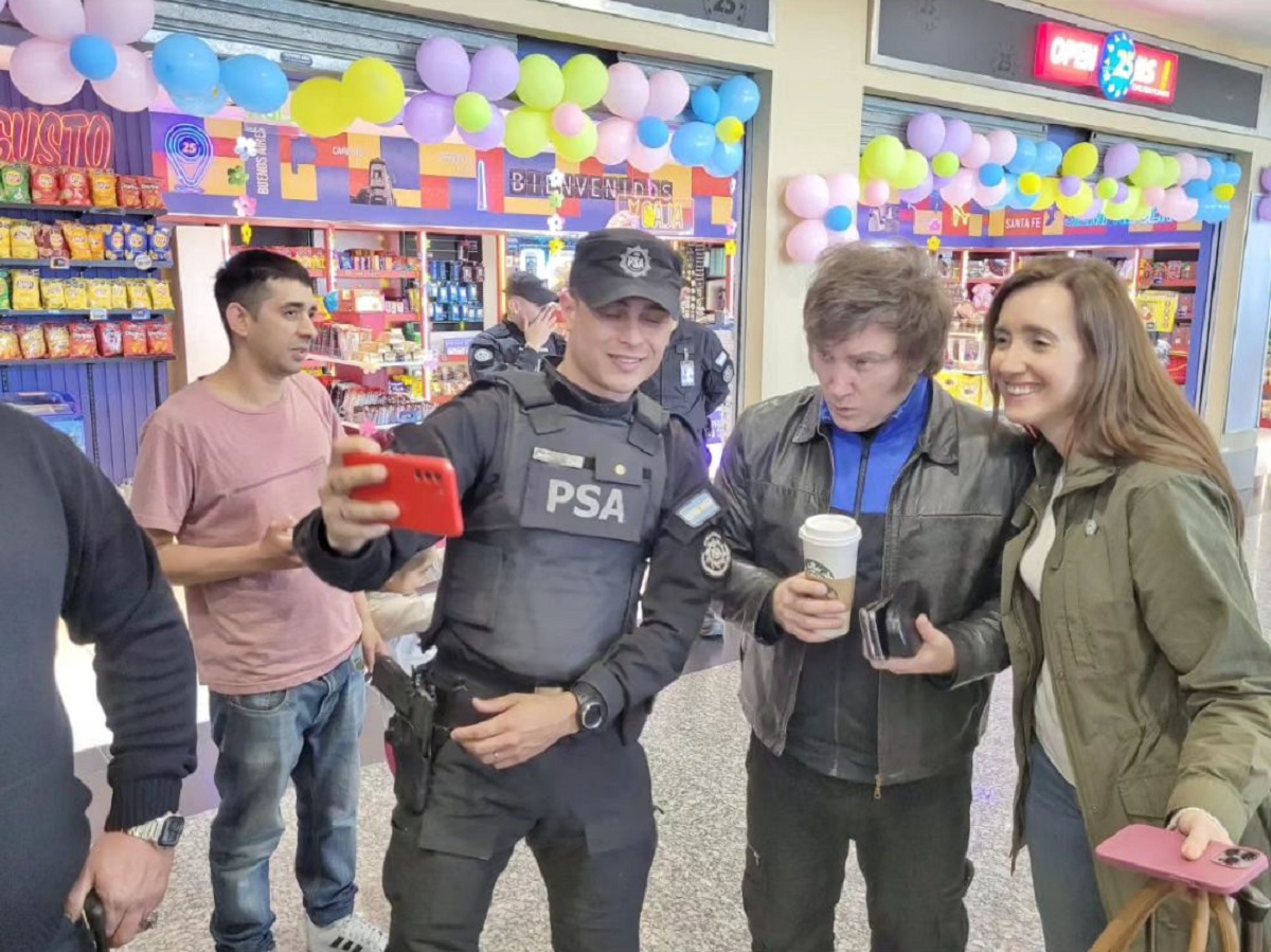 Además, antes de tomar el avión, junto a la cuestionada candidata a vicepresidenta Victoria Villarroel y demás integrantes del equipo, Milei cantó uno de los jingles que se hizo más conocido, alentando su propia candidatura.