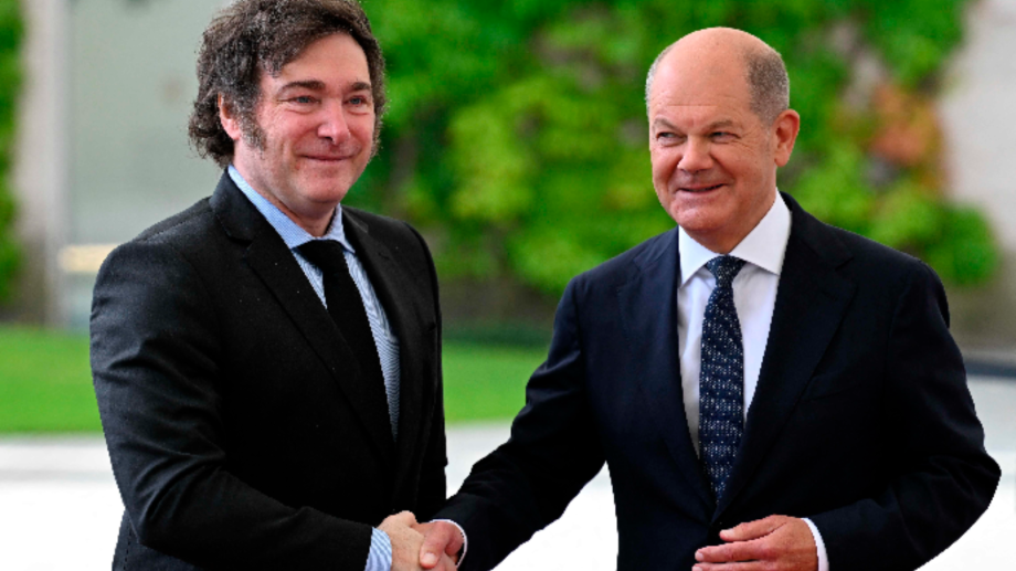 Milei se reunió con el canciller alemán Olaf Scholz, en medio de una ruidosa protesta en Berlín
