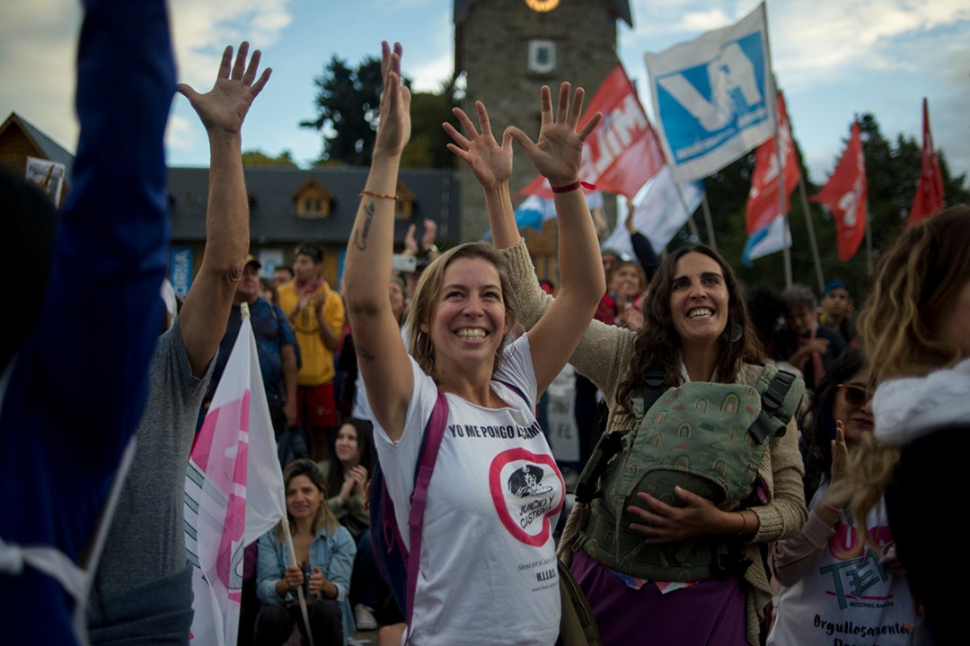 Hubo dos movilizaciones que después confluyeron en una sola columna que avanzó hasta el Centro Cívico, donde se hizo el acto central. Un grupo de manifestantes se concentró en la casa donde están detenidas con prisión domiciliaria las cuatro mujeres de la comunidad mapuche Lafken Winkul Mapu. Las cuatro están imputadas y procesadas por usurpaciones en Villa Mascardi. Esa movilización salió alrededor de las 18 en dirección hacia el centro de Bariloche.