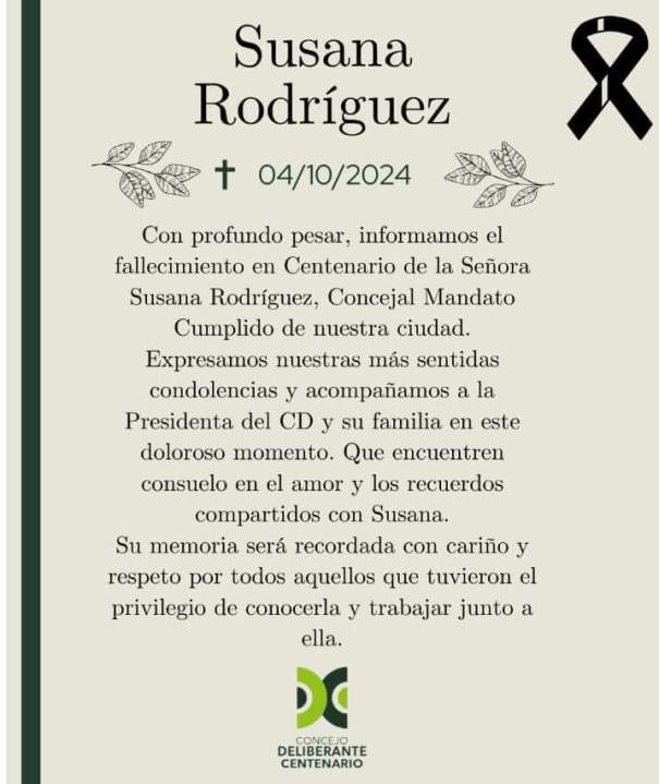 Murió Susana Rodríguez en Centenario: las despedidas