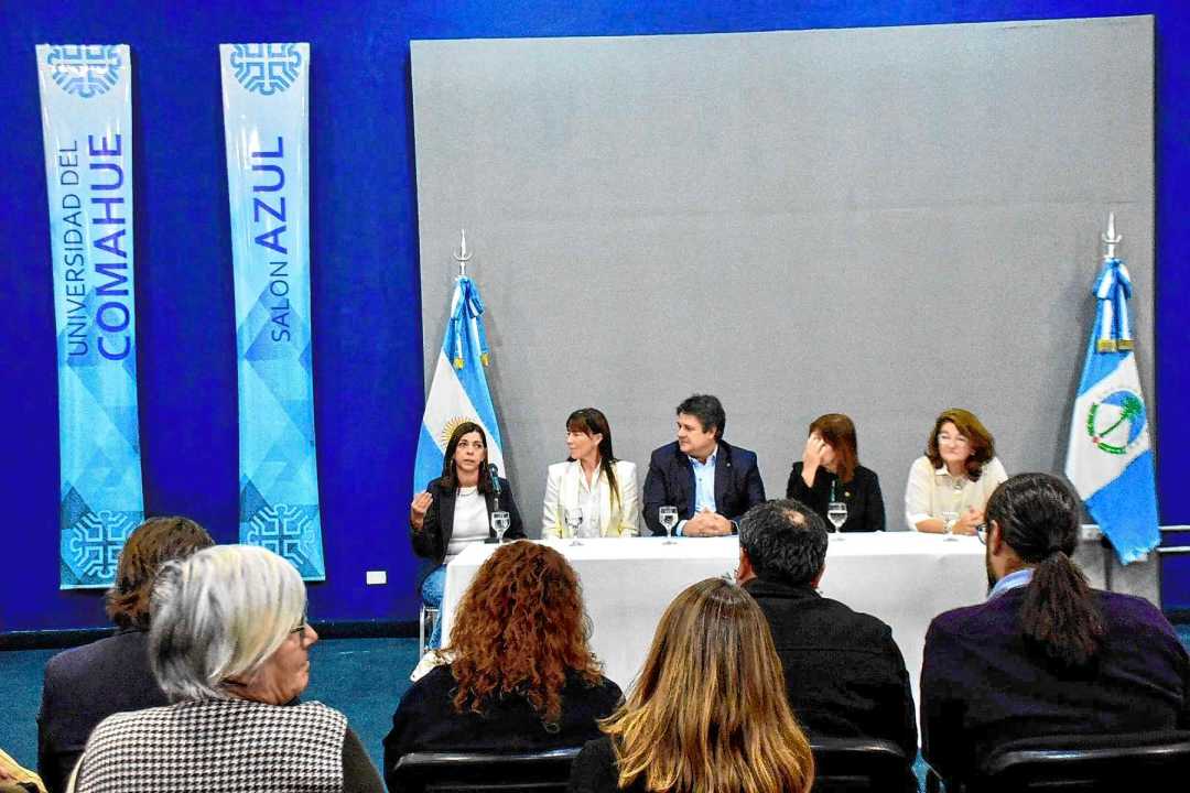 Tanto Gaido como Gentile destacaron el uso comunitario que hace la ciudad de Neuquén y sus organizaciones, del Salón Azul de la UNCo, ubicado en el piso superior de la biblioteca central universitaria. Estuvieron presentes también la ministra de Desarrollo Humano, Julieta Corroza, el ministro de Salud, Martín Regueiro, la subsecretaria de Obras y Servicios de la UNCo, Stella Tobares, la secretaria Académica, Teresa Braicovich y el vicerrector Paul Osovnikar