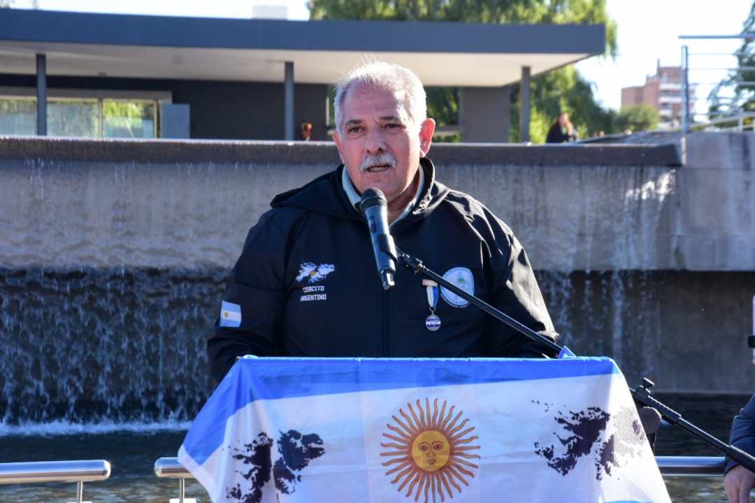 Durante el inicio de la jornada se procedió al izamiento de la bandera nacional, alcanzando el número 242 desde que se inició esta práctica en noviembre de 2006. El presidente del Centro de Veteranos de Guerra, Elio Canali, remarcó que este homenaje se sostuvo de manera ininterrumpida, incluso durante el periodo de pandemia.