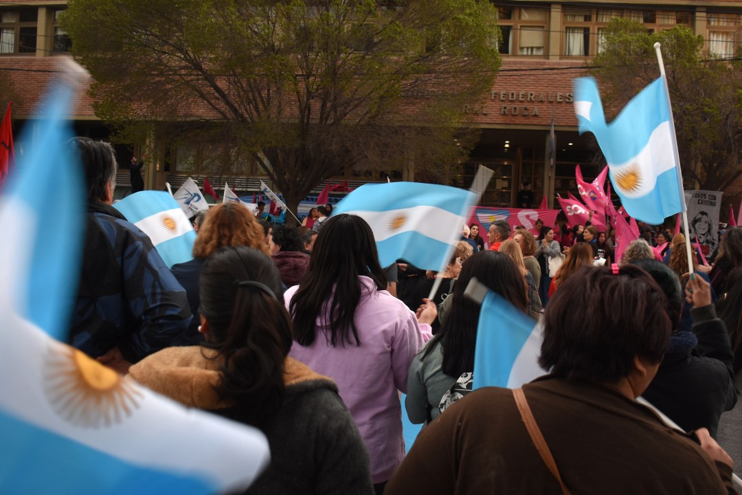 Cientos de vecinos y referentes políticos se manifestaron frente al Juzgado Federal de Roca en apoyo a Cristina Fernández.