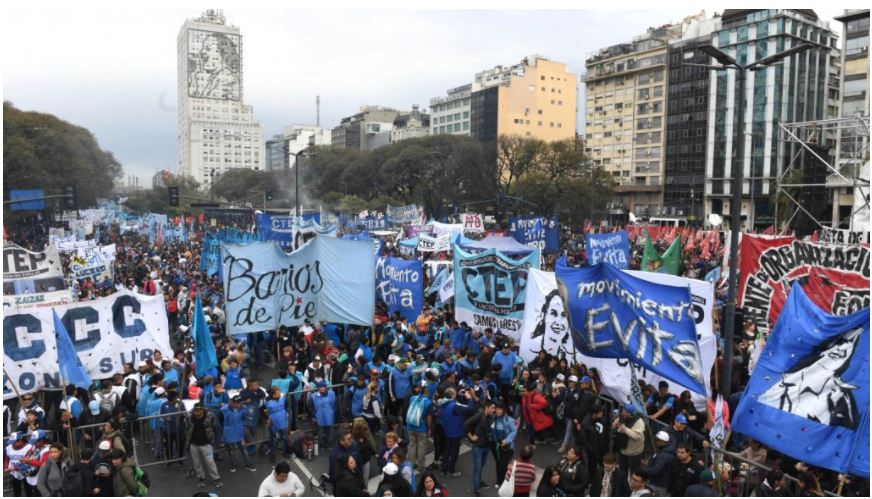 El objetivo de la movilización a Plaza de Mayo, prevista en principio para la semana que viene, es «que no llegue el ajuste que pretende este FMI, que parece querer desestabilizar al Gobierno».