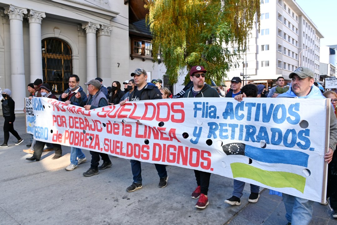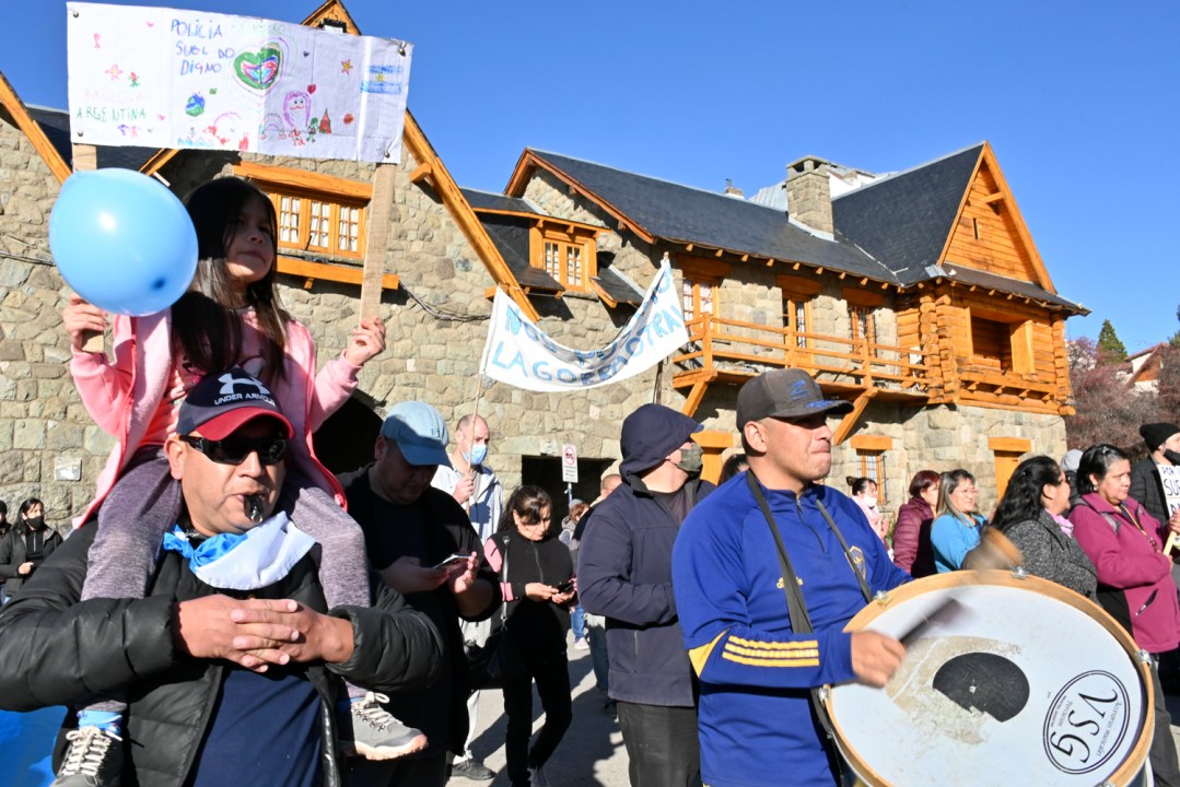 Desde ese punto caminaron al ritmo de bombos y redoblantes hasta el centro de Bariloche. Varios portaban carteles con el reclamo de mejores y dignos salarios. El paso de los manifestantes recibió el apoyo de algunos comerciantes o automovilistas que pasaban cerca.