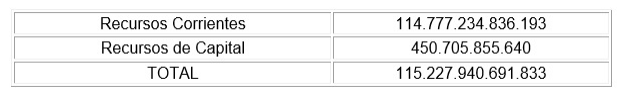 TREINTA Y TRES ($ 115.227.940.691.833) el Cálculo de Recursos Corrientes y de Capital de la Administración Nacional, de acuerdo con el resumen que se indica a continuación y el detalle que figura en la Planilla Anexa 8 al presente artículo.
