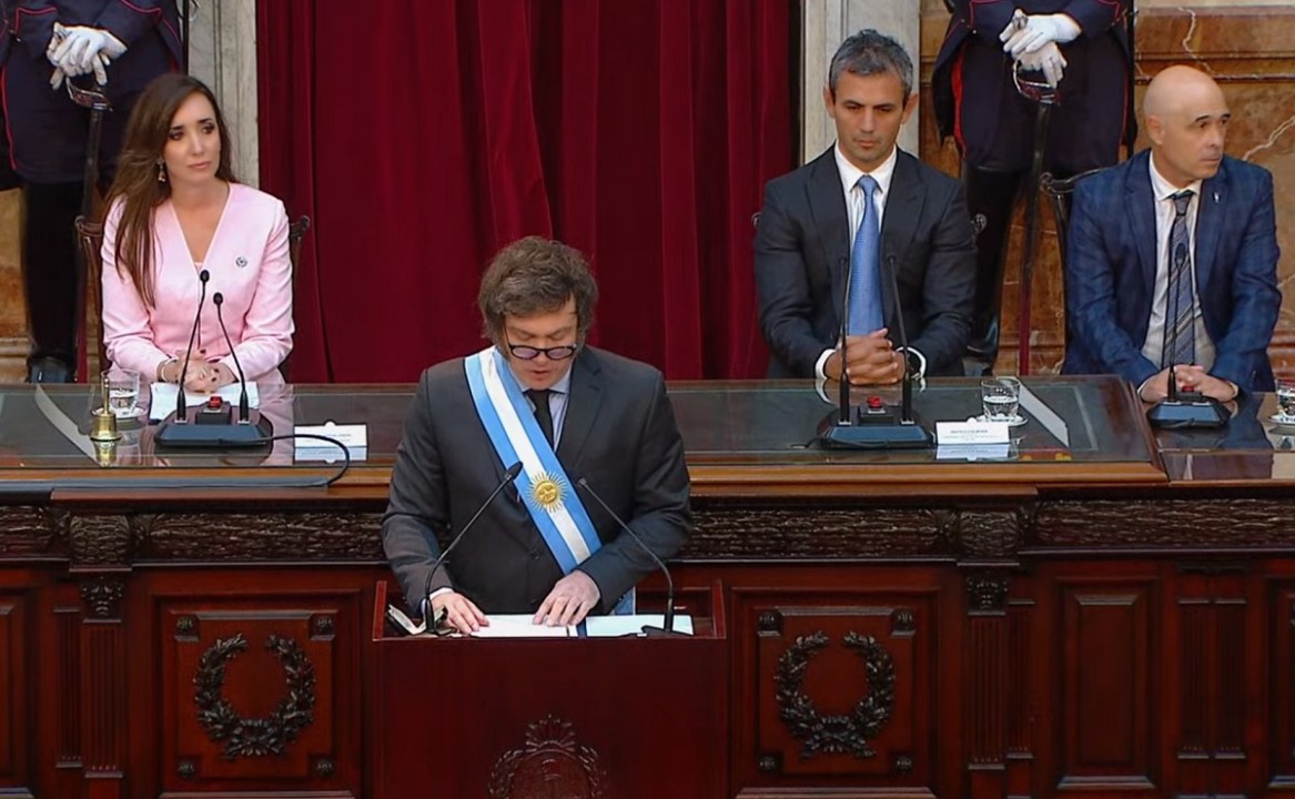 Milei inició el 142° período de sesiones ordinarias en el Congreso. Planteó un paquete de ley «anti casta», con énfasis en sindicatos, estatales y partidos políticos. Además, propuso el «Pacto de Mayo», que consiste en un acuerdo con gobernadores en el que les ofrece alivio fiscal a cambio de la aprobación de la «Ley Ómnibus» . Los gobernadores de Neuquén, Rolando Figueroa, y Río Negro, Alberto Weretilneck, no participaron del acto. Hubo protestas fuera del Congreso.