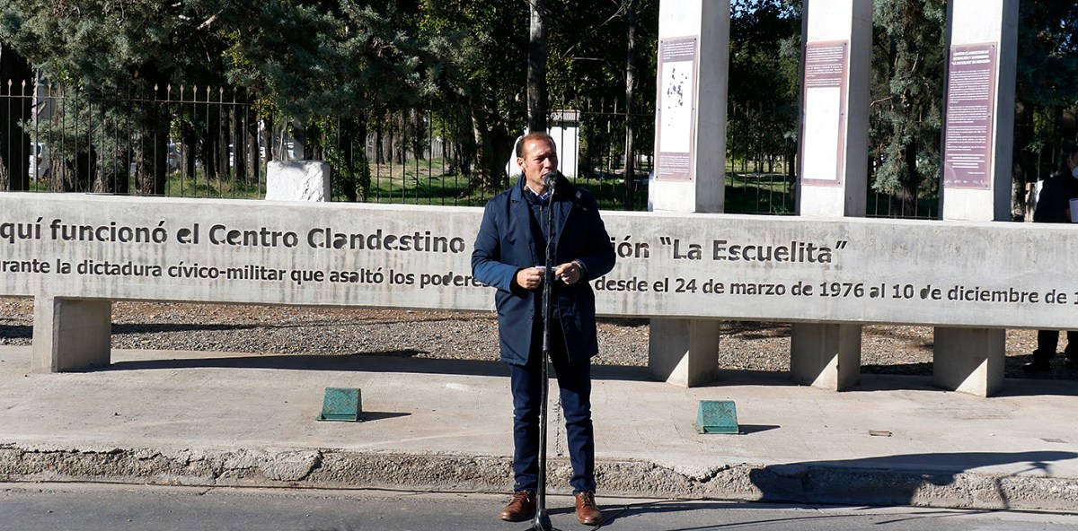Por la mañana, hubo un primer acto en el predio del Batallón de Ingenieros de Construcción 181 del Ejército donde funcionó el centro clandestino de detención “La Escuelita”, organizado por el gobierno provincial y del que también participó el intendente. En esa oportunidad, el gobernador anunció la decisión de hacer el llamado a concurso nacional de ideas y anteproyecto para el Parque de la Memoria.