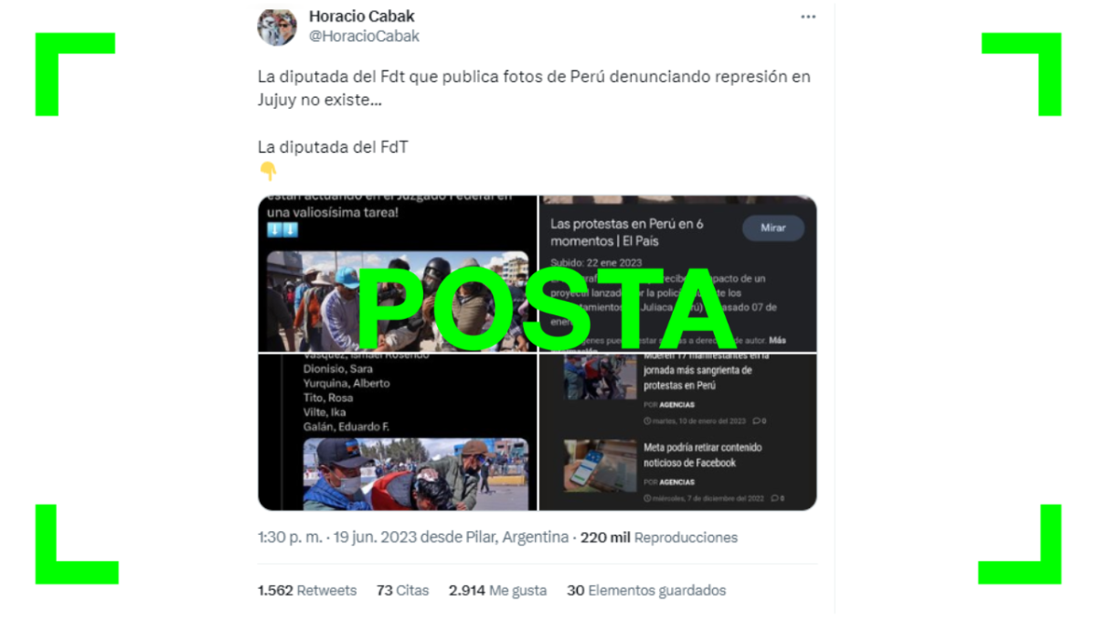 Es cierto que una diputada del Frente de Todos de Jujuy utilizó fotos de una manifestación en Perú para ilustrar el conflicto de su provincia