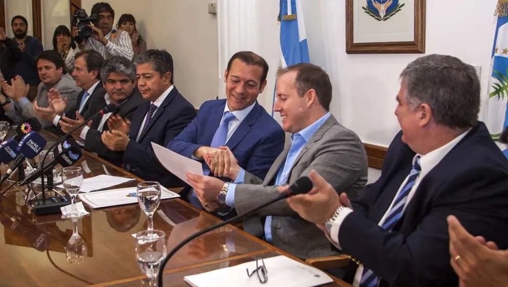 Mischa Leon Aleksander fue quien puso la firma y el apretón de manos con el gobernador. En ese acto en Casa de Gobierno, se presentó como suizo, aunque la documentación que presentó en el pliego de licitación y a los que accedió Diario RÍO NEGRO indicaban nacionalidad británica y con visa de permanencia definitivamente chilena.