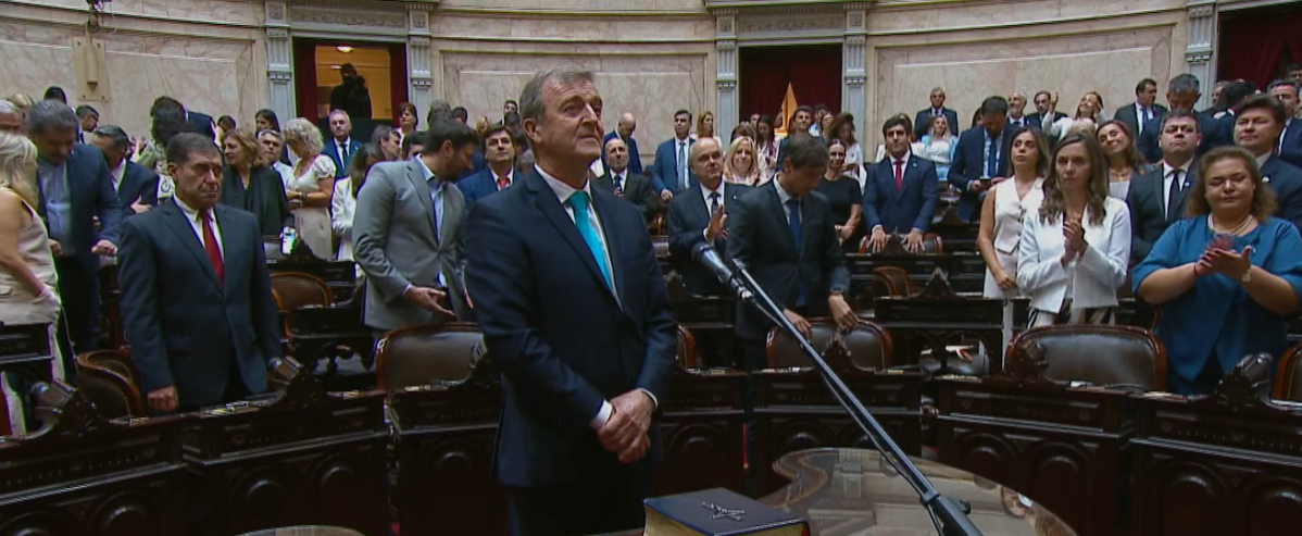 Más tarde, fue Marcelo Mango quien tomó juramento como diputado nacional. Mango es docente, presidente del partido Frente Grande Río Negro, estuvo al frente del Ministerio de Educación de la provincia, fue secretario general del Consejo Federal de Educación y ocupó una banca en la Legislatura rionegrina entre 2015 y 2023.
