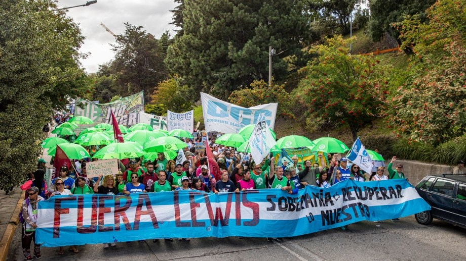 Raúl Rajneri, de la CCC, recordó que participan de la marcha desde 2016. «Salimos a luchar para que se vaya Lewis. Ahora, con el hidrógeno verde se han entregado 625 mil hectáreas a una empresa extranjera. Es el segundo terrateniente más importante de Argentina, después de Benetton«, objetó.
