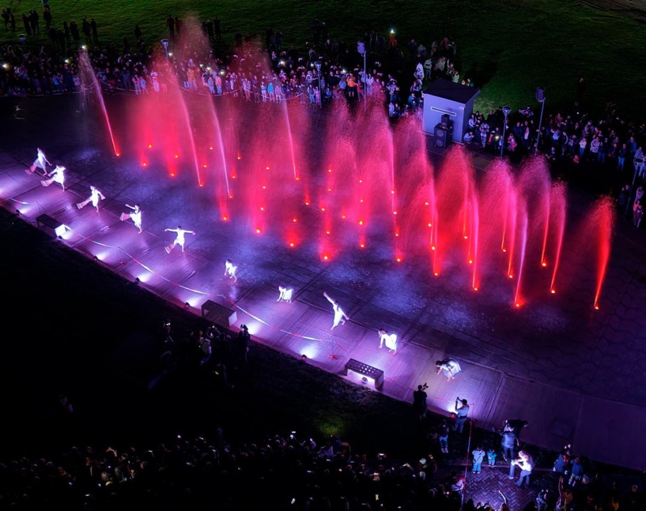 El gran atractivo de la inauguración fue la fuente de aguas danzantes, una propuesta tecnológica que combina luces y música. Según el intendente, el impacto visual nocturno de la obra junto a la barda iluminada es comparable a destinos turísticos de renombre.