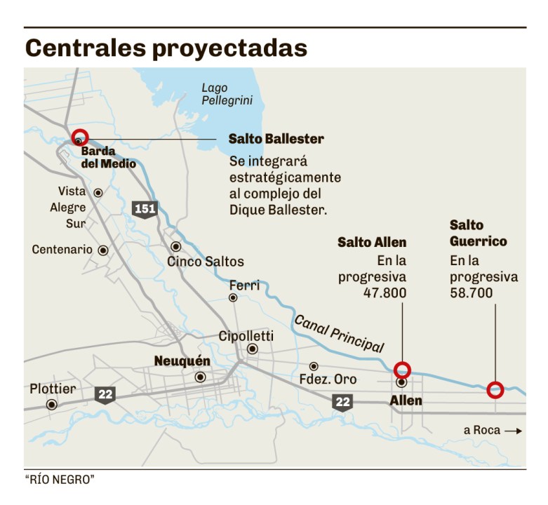 “El orden de ejecución priorizará el mayor potencial de generación, comenzando por Guerrico, seguido por Ballester y finalmente Allen”, indicó el titular del organismo provincial.