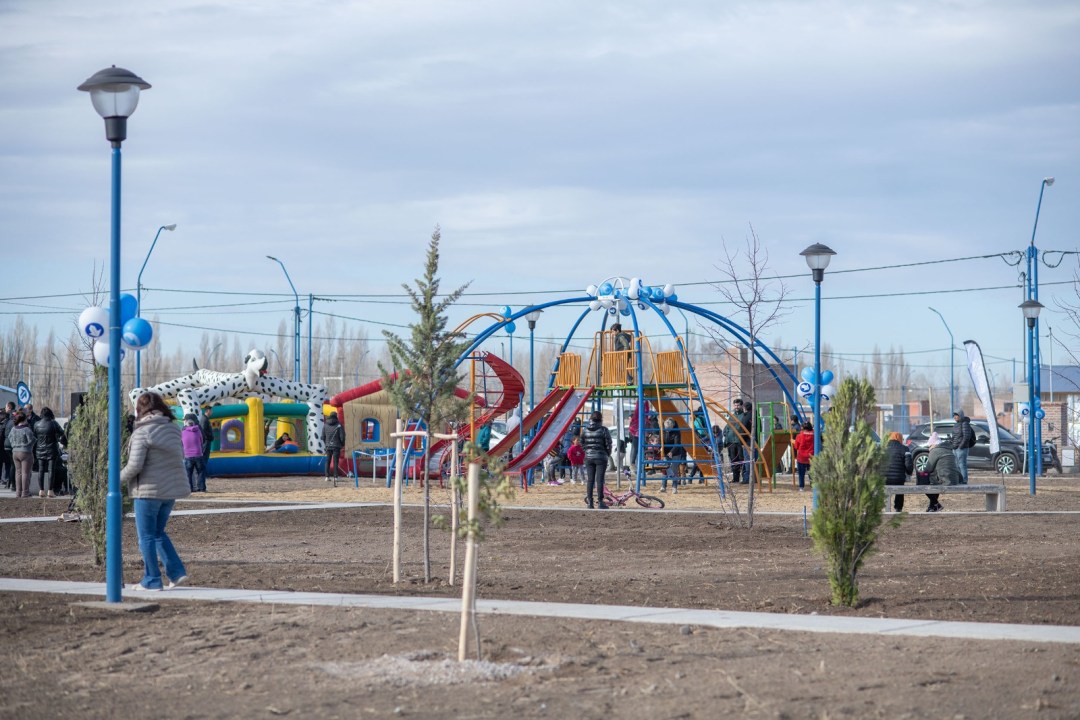 “La plaza fue diseñada con una mirada integral, priorizando la calidad urbana y el cuidado ambiental. Cuenta con parquizado y forestación, veredas perimetrales, sistema de riego automatizado, luminarias LED con cableado subterráneo, mobiliario urbano con bancos y cestos de residuos, además de un espacio para jugar al fútbol y una estación de multijuegos infantiles, pensada para estimular el juego, la creatividad y la actividad física de niños y niñas”, se informó.