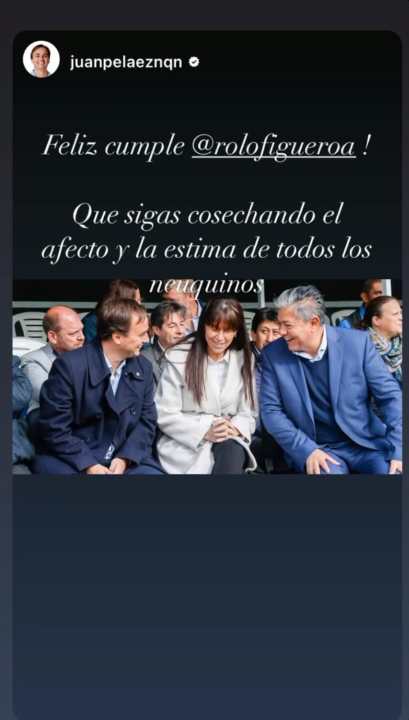 A través de su cuenta de Instagram, Figueroa compartió las expresiones de afecto recibidos por parte de importantes representantes de la política neuquina.