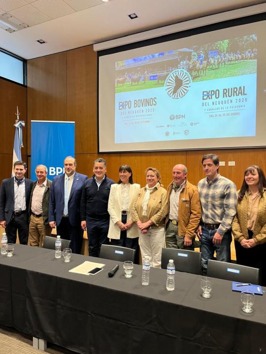 Figueroa estuvo acompañado por el secretario de Producción e Industria, Diego García Rambeaud; la titular de la Rural neuquina, Cecilia de Larminat; y el presidente del BPN, Gabriel Bosco.