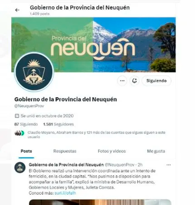 A primera hora del segundo día de gestión se comenzó a cambiar la imagen de los organismos públicos provinciales en las redes sociales: X (ex-Twitter), Facebook e Instagram. El lunes se había renovado la imagen en la página oficial.