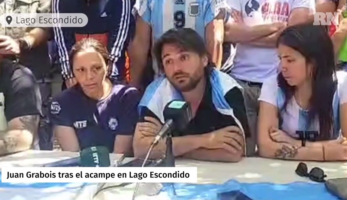 Tanto él como el resto de personas fueron retirados de la propiedad escoltados por la policía de Río Negro y un grupo de fiscales a cargo, entre los que se encontraba Francisco Arrien, de El Bolsón. La noticia se produjo luego de que se filtraran una serie de videos en los que se ve a Grabois discutir con trabajadores del lugar y efectivos policiales. Habían arribado el martes pasado y desplegado hasta nueve carpas a la orilla del famoso espejo de agua.