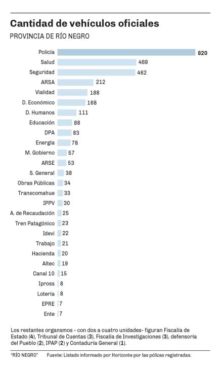 Este asiento de los vehículos del Estado rionegrino se presenta con discrepancias cuando se evalúan el número y el reparto informado por cartera.