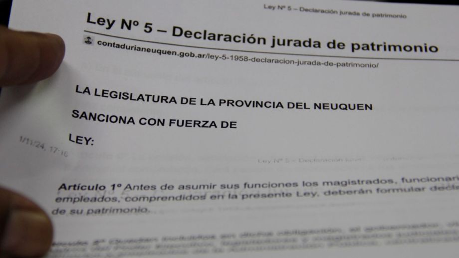 La presentación de las declaraciones juradas de los funcionarios públicos de Neuquén está regulada por la ley 5. Rige para los tres Poderes del Estado. Es una normativa sancionada en 1958, es decir, una ley que regula una sociedad que ya no existe.