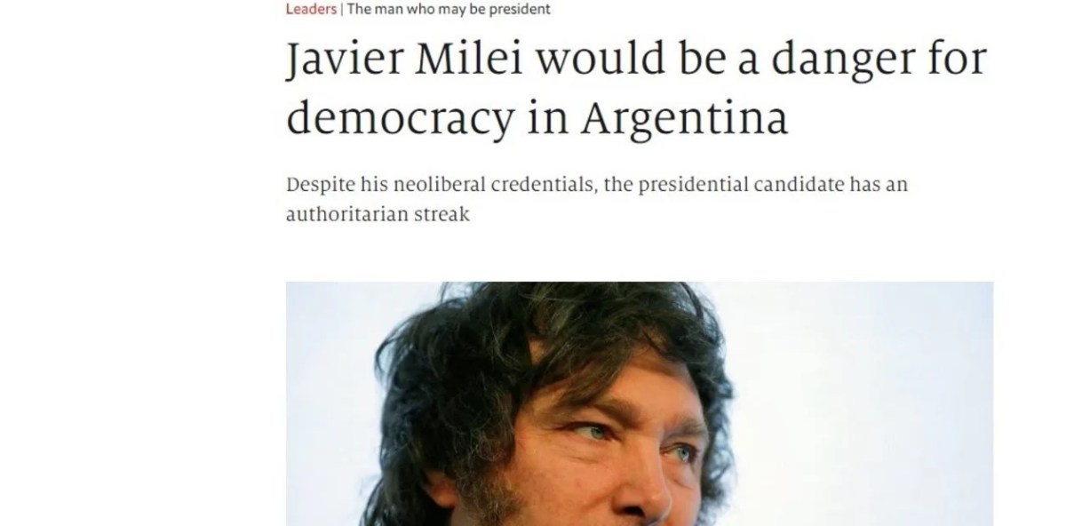 «Javier Milei representaría un peligro para la democracia en la Argentina», tituló el semanario británico una de las notas de apertura de la edición que salió este viernes.
