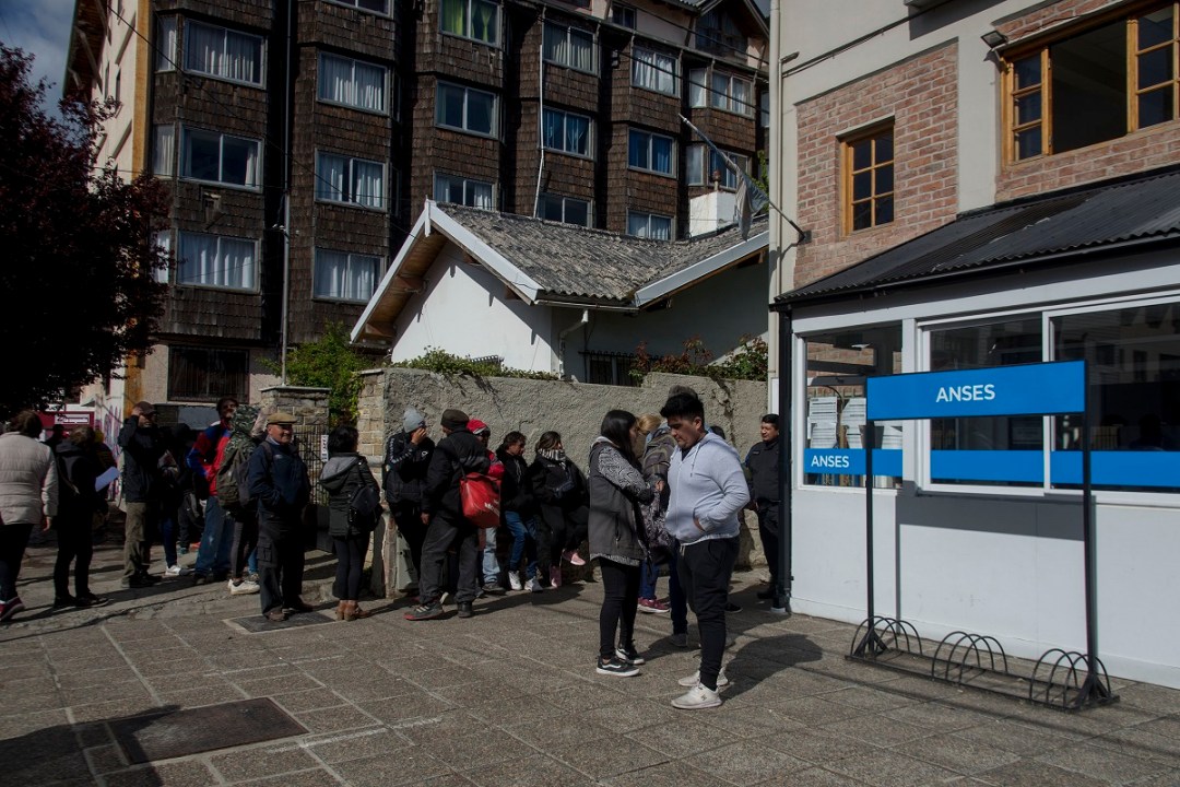 La fila en la delegación de Anses Bariloche llega hasta la calle Gallardo. Aseguran que de 10 consultas, solo 4 personas podrán acceder a los beneficios.