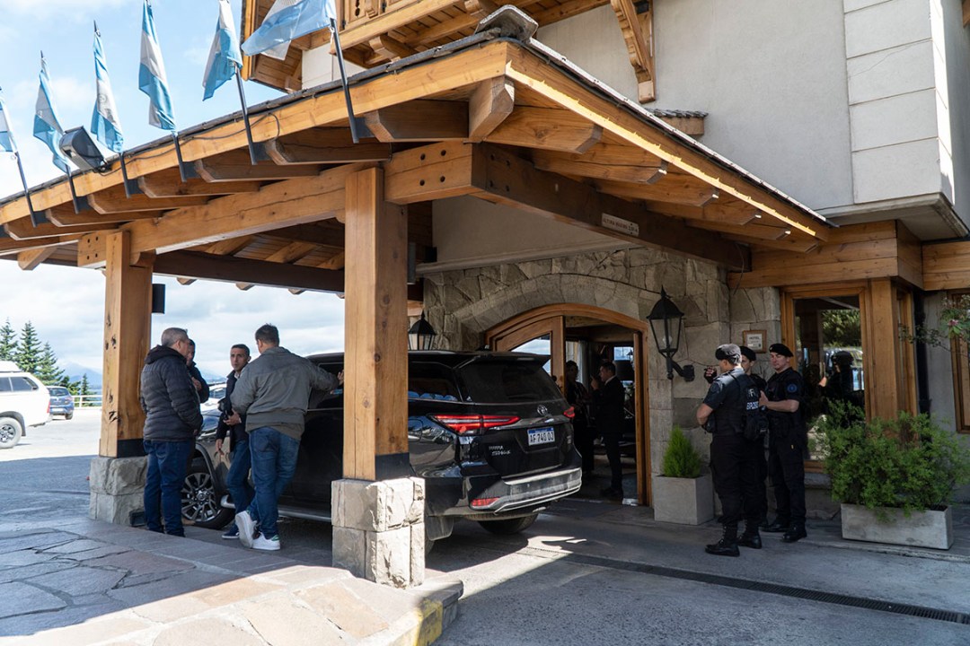 Minutos antes del mediodía, Villarruel abandonó el hotel y evitó hablar con la prensa que se encontraba a la espera de la vicepresidenta. Salió por uno de los estacionamientos laterales del alojamiento de la Costanera, abordo de un tranfer y de inmediato rodearon el vehículo las camionetas que oficiaban de custodia y las motocicletas de la Policía.