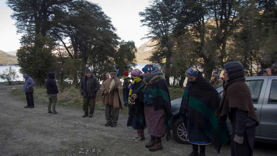 Uniformados se acercaron con armas largas a los manifestantes para pedir que se retiren del lugar en dirección al norte, hacia la estación de servicio que se encuentra a pocos metros. La abogada dialogó con los agentes y finalmente, la ceremonia se realizó a orillas del lago Mascardi, debajo del exhotel de Guardaparques.