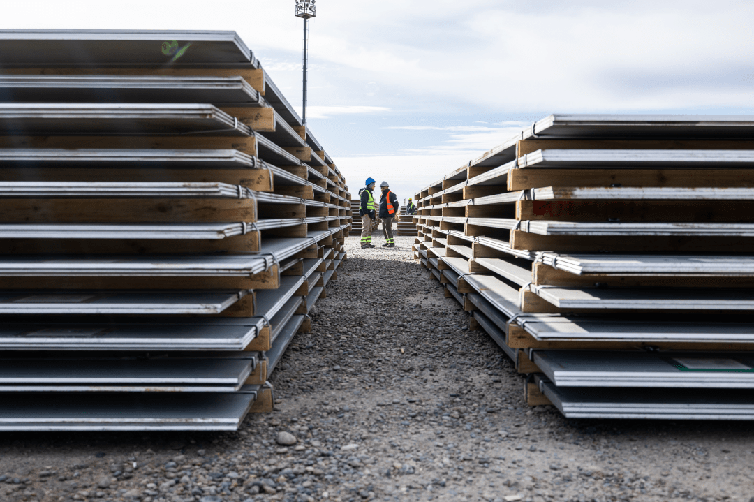 El material, adquirido en Corea y embarcado en China, será utilizado en la construcción de los tanques de almacenamiento que conforman una de las obras centrales del VMOS.  Algunas de las planchas alcanzan los doce metros de largo, con tres y medio de ancho, con 42 milímetros de espesor. Pesan arriba de los 1000 kilogramos.