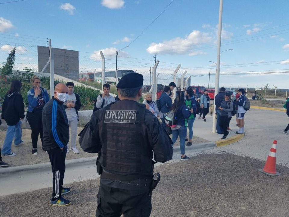 En Puerto Madryn, donde se llevan a cabo las disciplinas de básquet y fútbol, un llamado anónimo alertó a las autoridades por una amenaza de bomba los diferentes estadios del Club Deportivo Madryn.