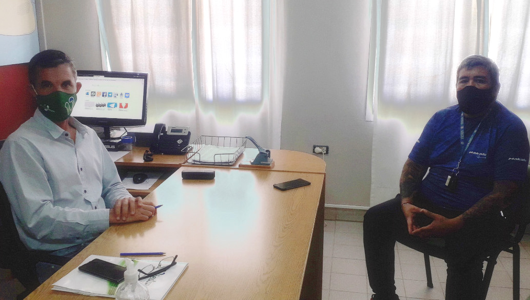 El viernes pasado, el dirigente de la construcción se reunió el viernes con el secretario de Obras Públicas de la Municipalidad de Viedma, Gastón Renda, ante el “panorama desesperante” que vislumbra el gremio para el segundo semestre del 2021 de no haber anuncios de obras provinciales, con fondos nacionales o externos, para Viedma y la Zona Atlántica.