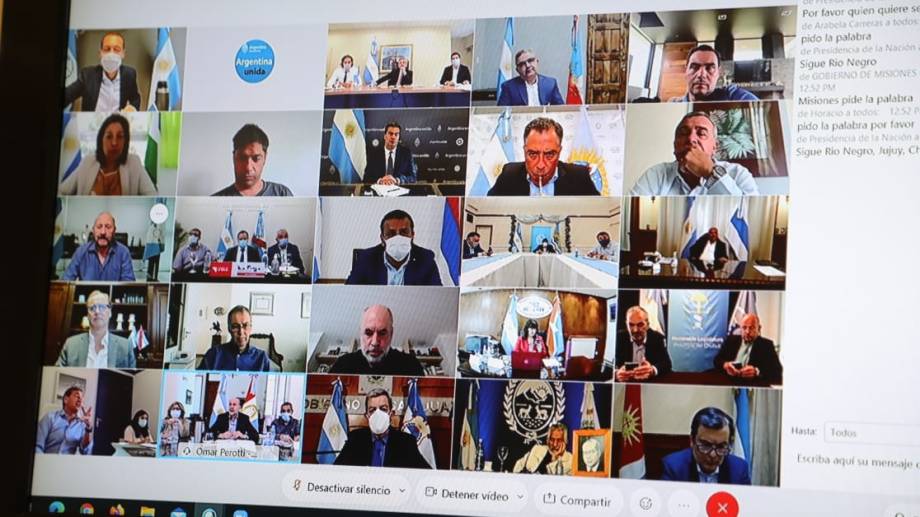 Participan del encuentro virtual el jefe de Gobierno de la Ciudad de Buenos Aires, Horacio Rodríguez Larreta; y los gobernadores de Buenos Aires, Axel Kicillof; Catamarca, Raúl Jalil; Chaco, Jorge Capitanich; Córdoba, Juan Schiaretti; Corrientes, Gustavo Valdés; Entre Ríos, Gustavo Bordet; y Formosa, Gildo Insfrán.