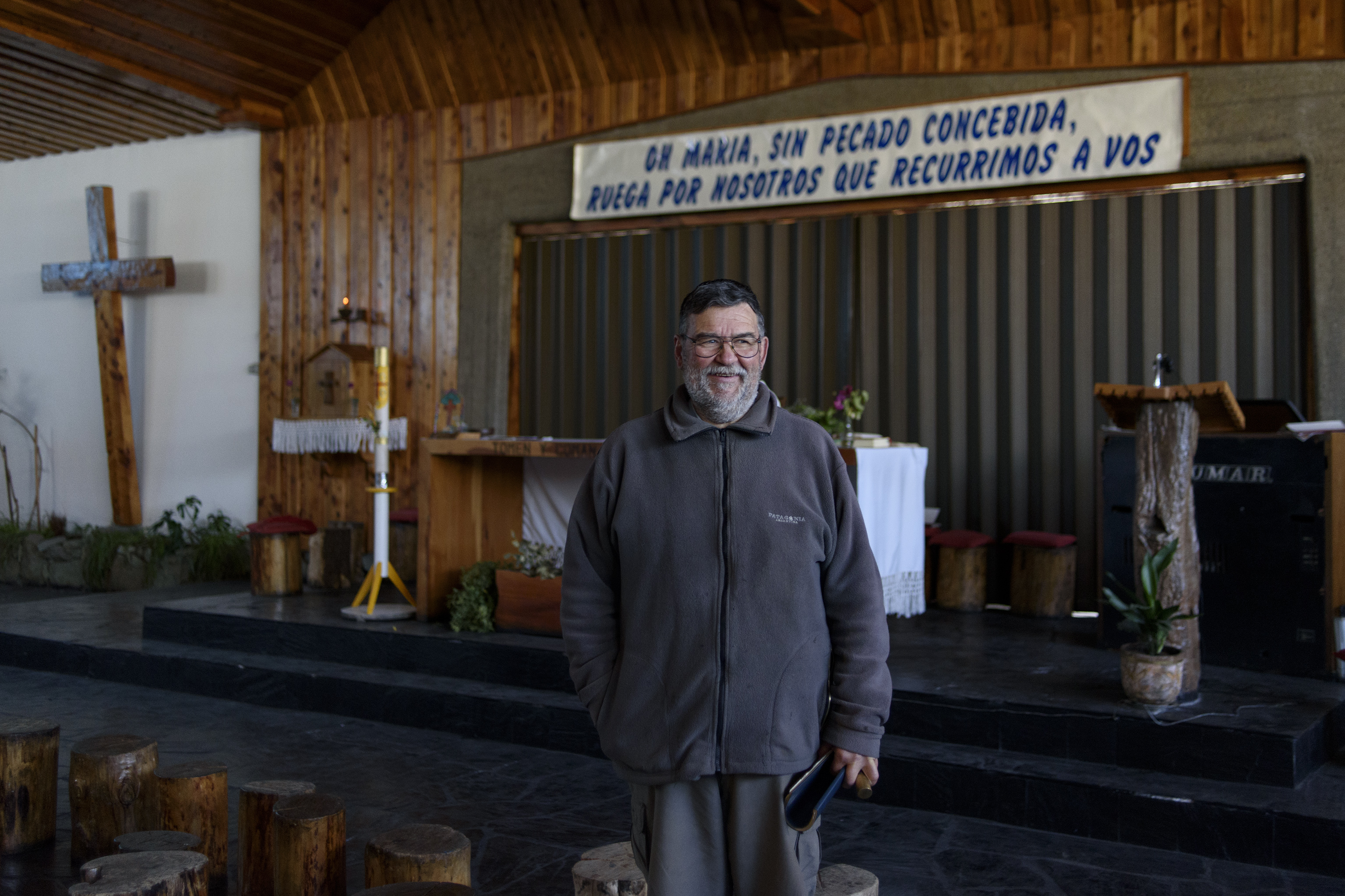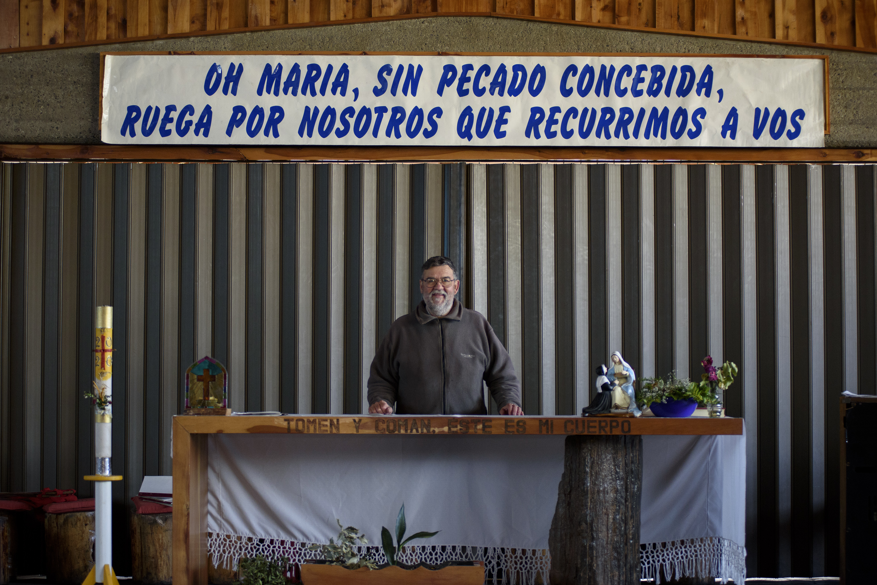 Por primera vez en 34 años al frente de la Parroquia de la Virgen Medalla Milagrosa, que está ubicada en la zona del Alto de Bariloche, el padre tenía que oficiar una misa de Pascuas en absoluta soledad.