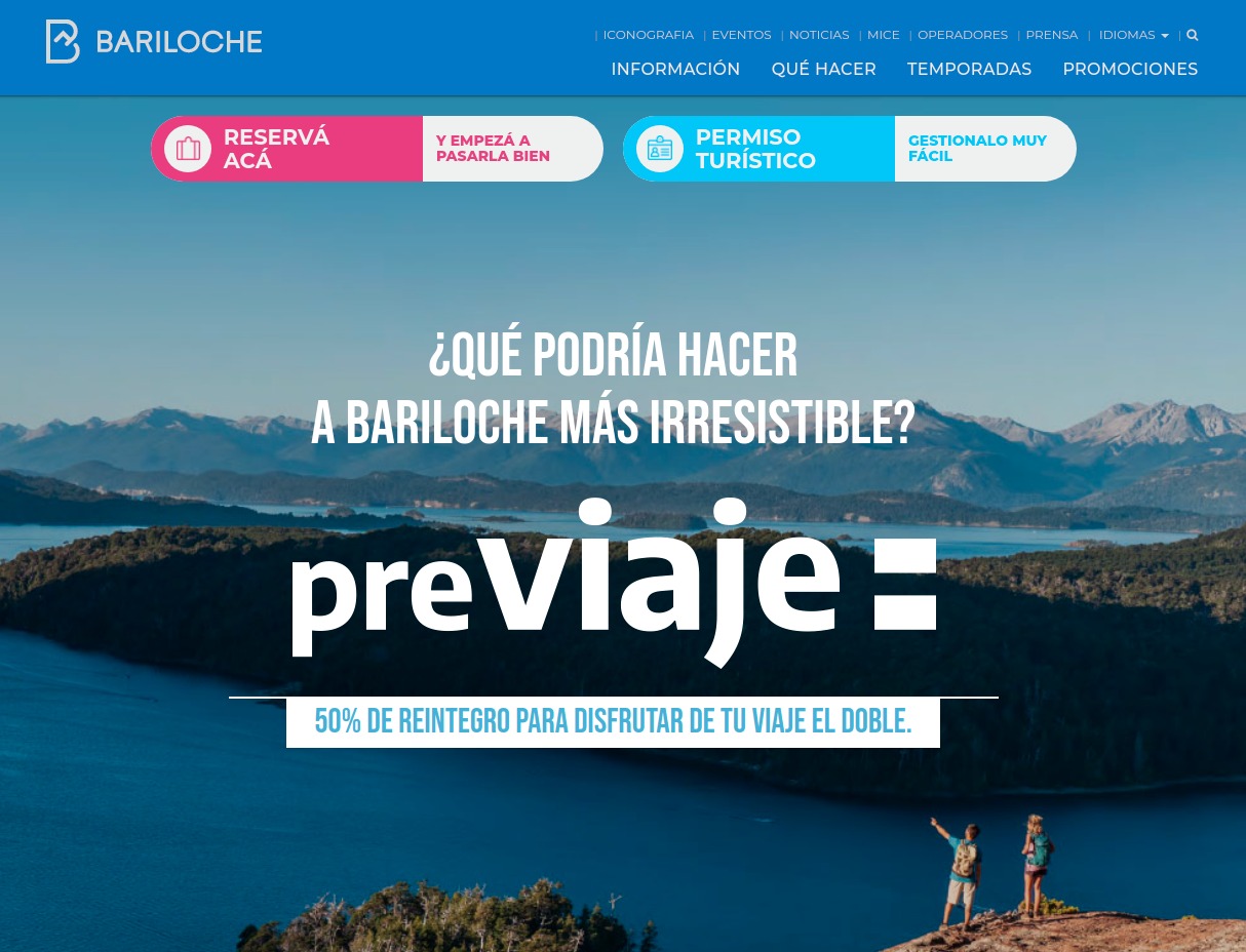El funcionario, que además preside el Emprotur, detalló que desde que se anunció la esperada vuelta del programa del Ministerio de Turismo y Deportes de la Nación ya se desarrollaron cuatro fuertes campañas, personalizadas y a públicos específicos, para conquistar turistas hasta diciembre, cuando finalizan las compras anticipadas. De hecho, Bariloche fue una de las ciudades que participó del lanzamiento del plan nacional en el Parque Nacional Iguazú, el pasado agosto. Y ya había encabezado la primera edición de PreViaje, con el 50% de los turistas adheridos al programa eligiendo a la localidad para sus vacaciones.