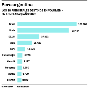 Las principales distorsiones de precios se observan aquí también en las peras que se orientan a los mercados de Paraguay, Bolivia y Brasil.