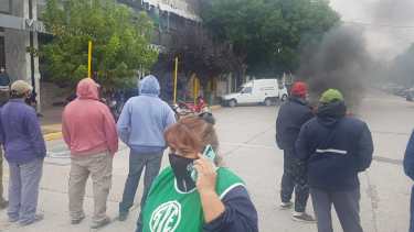 Afiliados a ATE protestan con la quema de neumáticos en las puertas del municipio de Regina.