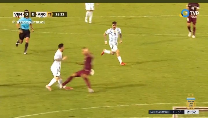 Después del corte en la transmisión oficial y antes del 1 a 0 de Lautaro Martínez, la imagen del primer tiempo fue la durísima infracción que recibió Lionel Messi por parte del defensor de Venezuela Luis Adrián Martínez.