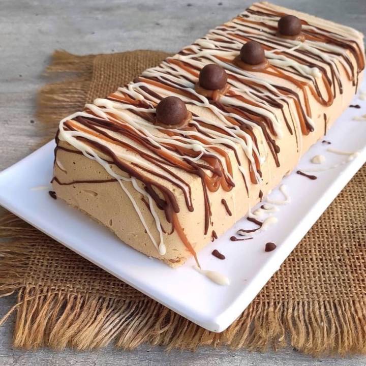Batir la crema de leche (si quieren con un poco de azúcar, pero como uso dulce de leche yo no le agrego). Después le agregan el queso crema y el dulce de leche hasta que esté todo integrado. Una vez lista la mezcla poner la mitad en un molde (usé budinera de silicona). Agregar las nueces, los merengues y unos tropezones de dulce de leche. Agregar la otra mitad de la mezcla y por último poner la base de pionono untada con dulce de leche. Llevar a freezer por aproximadamente 8 horas y luego retirar del molde. Decorar como más te guste.