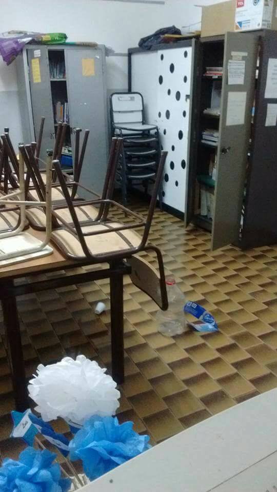 Luego de que se dio aviso a las autoridades policiales, personal directivo se hizo presente y constató que sólo había desorden entre los elementos didácticos que quedaron esparcidos por el piso.