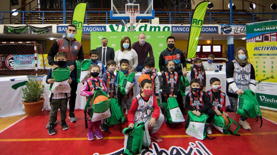 Por otra parte, el gobierno provincial hizo a entrega de elementos deportivos a los chicos y chicas de la Escuelita de iniciación y pre mini del club Deportivo Viedma y pelotas de básquet para Viedma y Del Progreso.